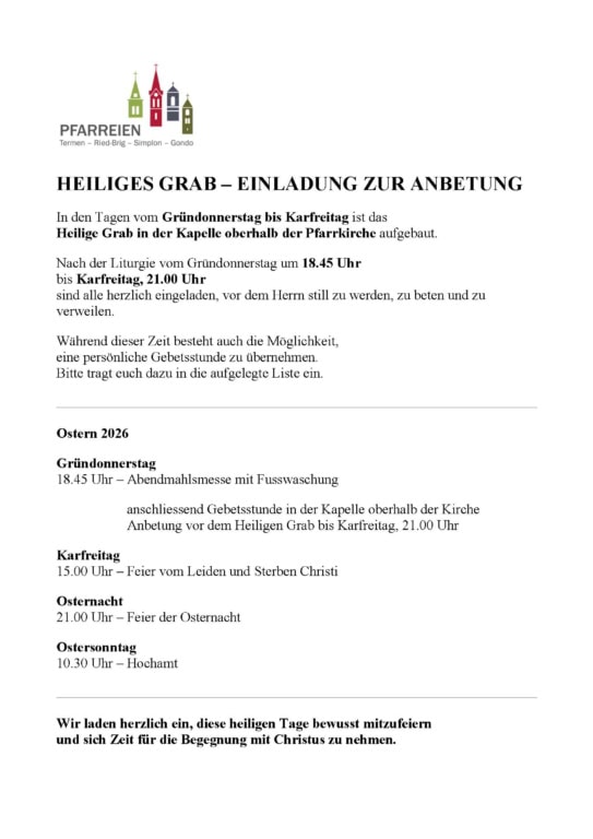 Pfarreien Brigerberg / Simplon: pfarrer@brigerberg-simplon.ch